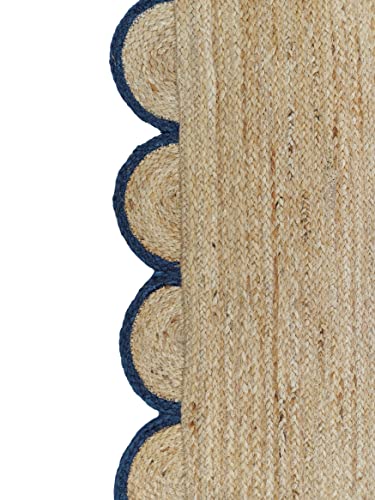 Weaving Village Scalloped Natural Jute Area Rug, Navy Trim, 2×3
