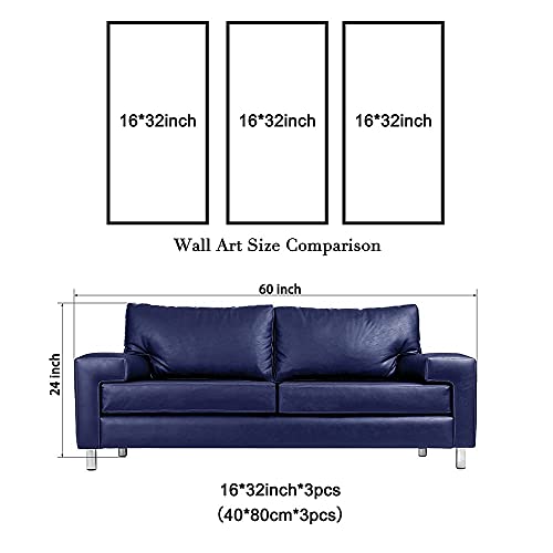 - 3 panels big gallery wrapped perfect blue canvas paintings wall art prints ready to hang for home decorations wall decor. Each panel has a black hook already mounted on the wooden bar for easy hanging out of box.