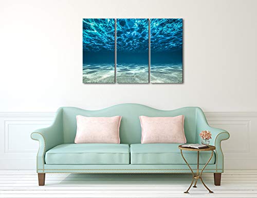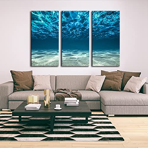 Wieco Art Blue Ocean Bottom Large Canvas Wall Art for Living Room Beach Theme for Bedroom Wall Decor Seaview Pictures Painting On Canvas Modern Giclee Canvas Prints Artwork for Home Decorations
