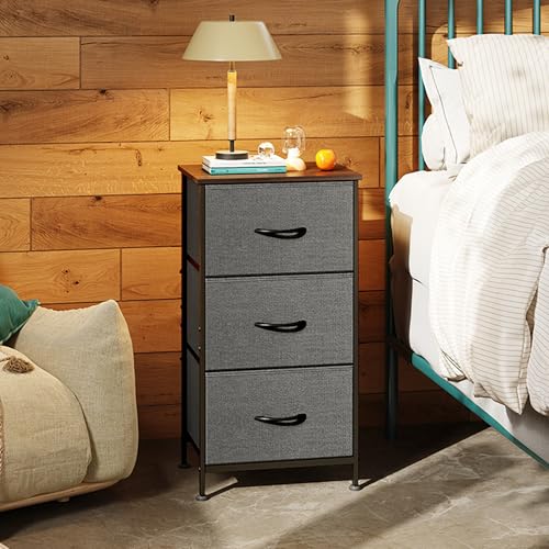 WLIVE Dresser with 3 Drawers, Fabric Nightstand, Organizer Unit, Storage Dresser for Bedroom, Hallway, Entryway, Closets, Sturdy Steel Frame, Wood Top, Easy Pull Handle, Dark Grey