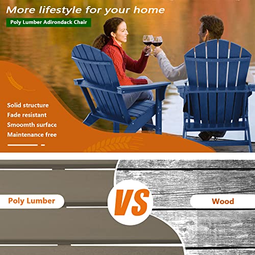 WMK Adirondack Chair Weather Resistant, Outdoor Fire Pit Chairs Plastic Resin Deck Adirondack Chairs for Patio, Law, Garden (Navy Blue)