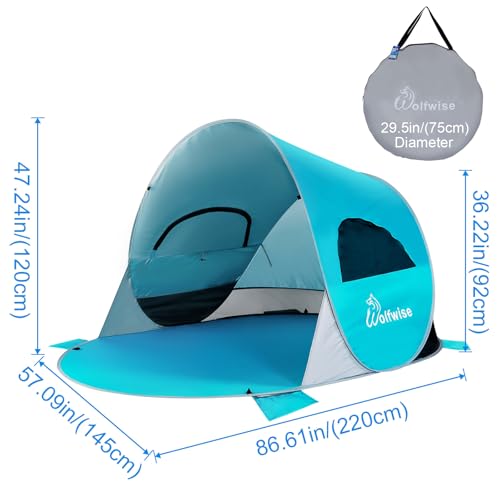 WolfWise UPF 50+ Easy Pop Up 3 Person Beach Tent Sport Umbrella Instant Sun Shelter Tent Sun Shade Canopy