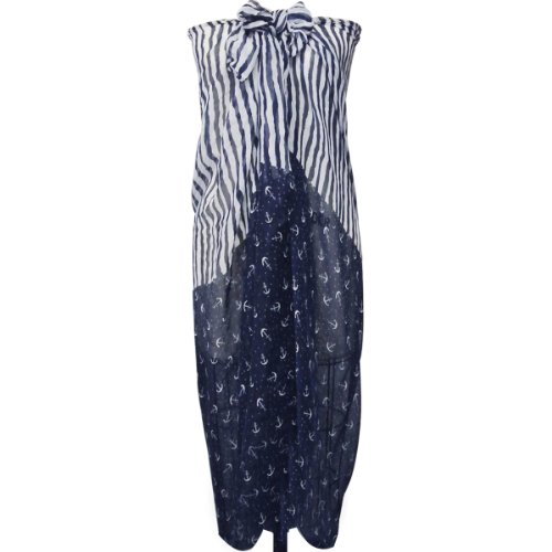 Wrapables® Stripes and Anchor Nautical Marine Scarf 72" X 42"