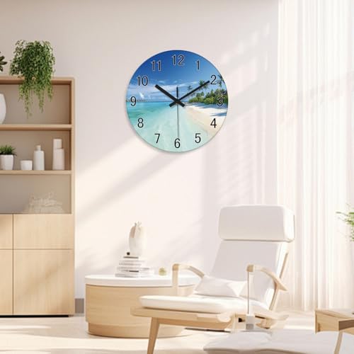 - 【SIZE & MATERIAL】Large Size 24 Inch beach theme glass wall clock is made of HD tempered glass,which does not fade or deteriorate under sunlight and rain, is waterproof, moisture-proof, and is easy to clean and maintain.