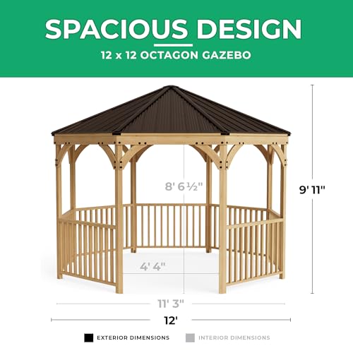 Yardistry 12' Meridian Octagon Cedar Gazebo with Aluminum Roof for Patios, Decks, Garden, Backyard, Durable