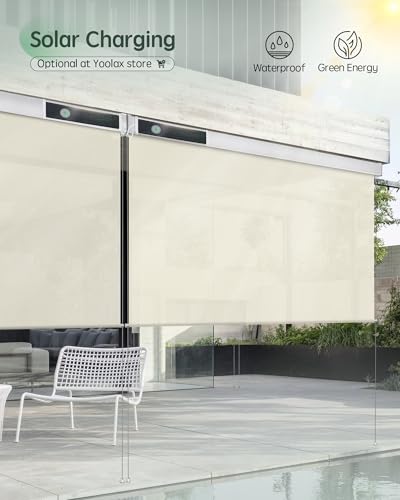 Yoolax Motorized Outdoor Shades Smart Retractable Patio Screens with App & Remote Control, Electric Blinds for Porch Patio Waterproof Roller Shades 7X8ft (3% Openness Beige)