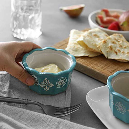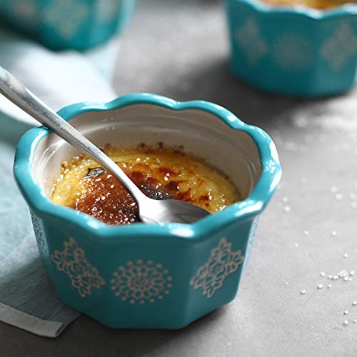 ZONESUM Ramekins 6 oz Oven Safe for Baking Creme Brulee, Porcelain Souffle Dishes Custard Cups Dessert Small Bowls, Set of 6, Turquoise