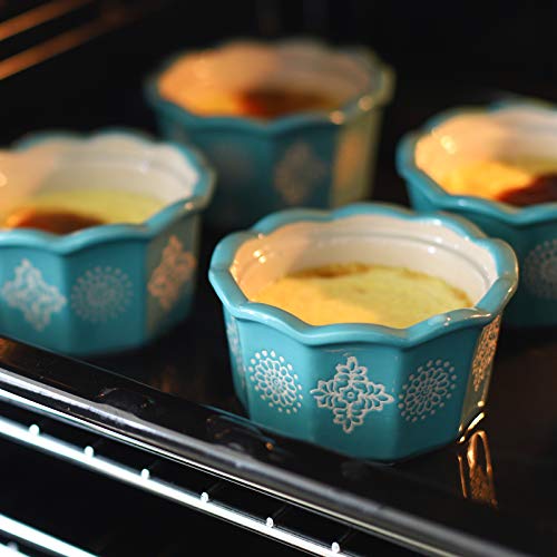 - Quaint And Unique Design: The petal-shaped edge, graceful embossed flower pattern and elegant turquoise colors formed the sweet souffle ramekins which adds a certain novelty and uniqueness to your table setting, meanwhile, gives us a free-spirited, warm and comfortable psychological feeling