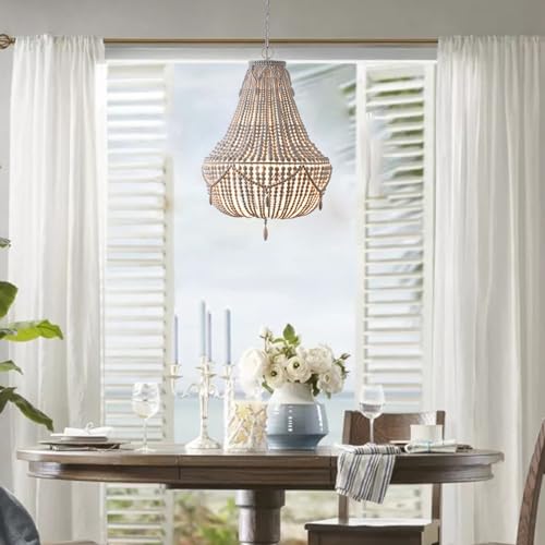 ZYYYSG Farmhouse Wood Beaded Chandelier Boho Light Fixture, White Wooden Bead Chandeliers Rustic Kitchen Island Hanging Pendant Lights Fixtures for Dining&Living Room, Bedroom, Entryway