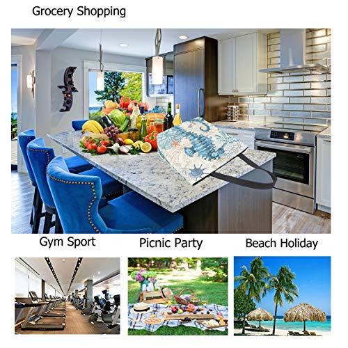 - ZzWwR Vintage Nautical Seahorse Starfish Old Map Print Extra Large Canvas Shoulder Tote Top Storage Handle Bag for Gym Beach Weekender Travel Reusable Grocery Shopping
